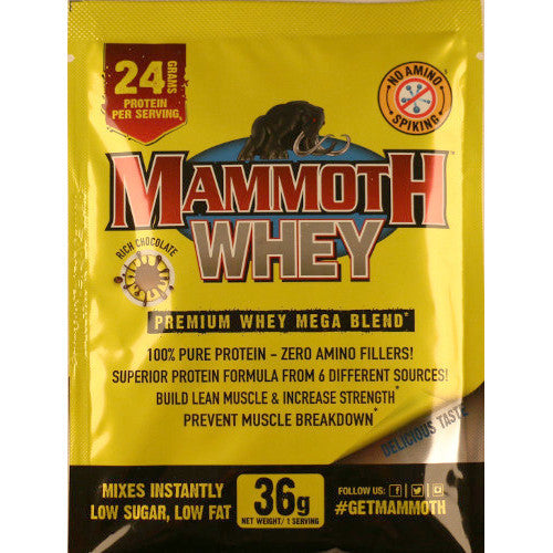 When you're looking to increase your protein intake. Mammoth Whey is an easy and effective way to do so. Offering a superior whey protein formula, this blend combines six sources of protein, offering both fast and sustained release components that will feed your muscles throughout the day. With each serving, you will be building lean muscle mass, ensuring you get the most out of your training efforts. Available in a number of delicious flavors, why not try a sample today?