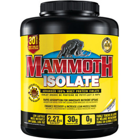 Offering 30 grams of whey isolate per serving, Mammoth Isolate does not contain any fillers and no added aminos. This advanced 100 percent whey protein isolate formula enhances anabolic effects, supporting nutrient uptake for faster absorption. Derived from cold temperature processing, this formula is not only pure, but contains completely undenatured, bioactive protein. Users benefit from a high-quality source of BCAAs for enhanced muscle building and post-recovery support.